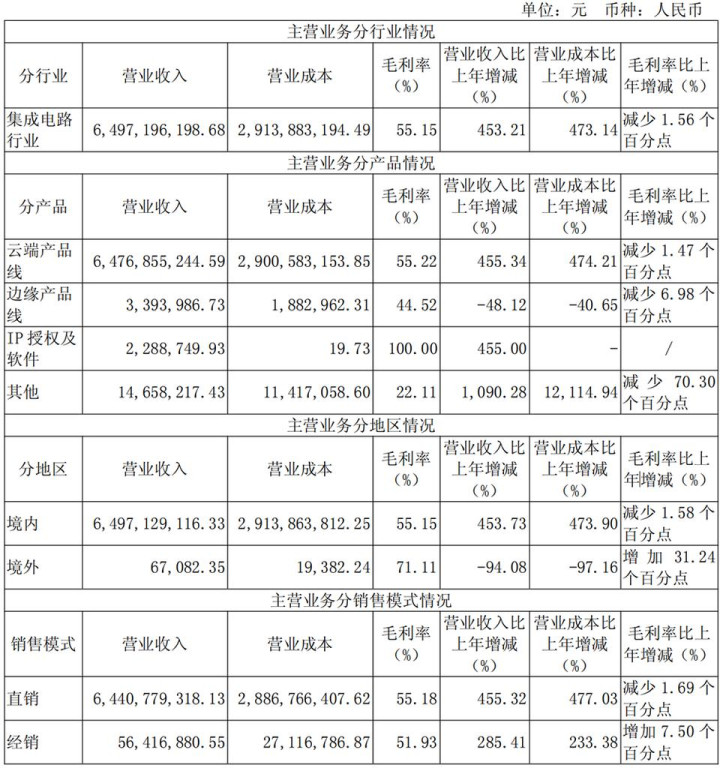 分居品来看,云表居品线2025年营收为64.77亿元,同比增长474.21%,孝敬了寒武纪2025年收入的99.69%。